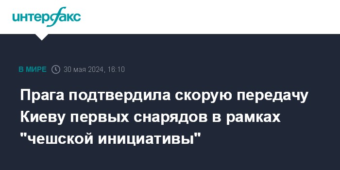 Москва. 30 мая. INTERFAX.RU - Первая партия снарядов в рамках так называемой "чешской инициативы" по поставкам боеприпасов Киеву может поступить на Украину в самое ближайшее время, сообщил на совместной пресс-конференции с генсеком НАТО Йенсом Столтенбергом премьер-министр Чехии Петр Фиала.