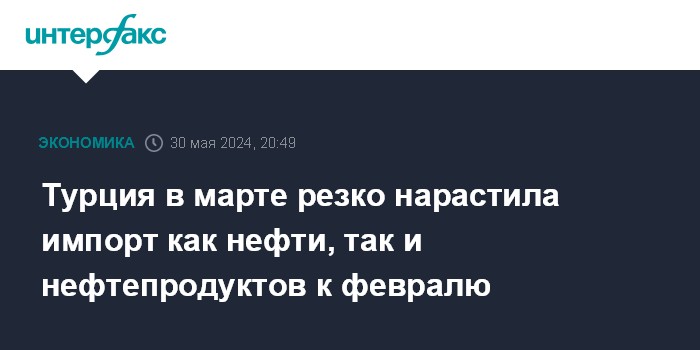 Турция в марте резко нарастила импорт как нефти, так и нефтепродуктов к февралю