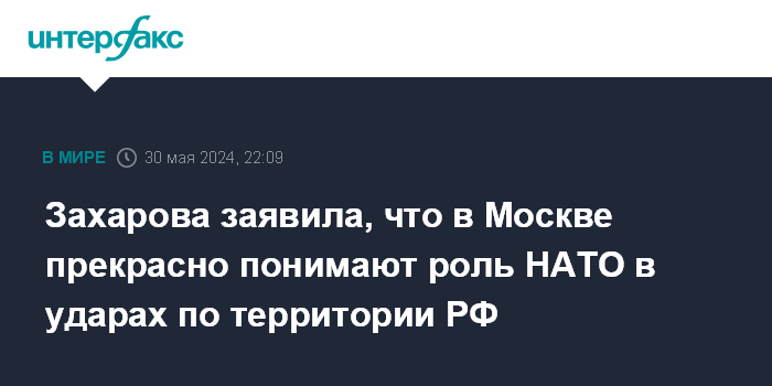 Захарова заявила, что в Москве прекрасно понимают роль НАТО в ударах по территории РФ