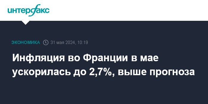 Инфляция во Франции в мае ускорилась до 2,7%, выше прогноза