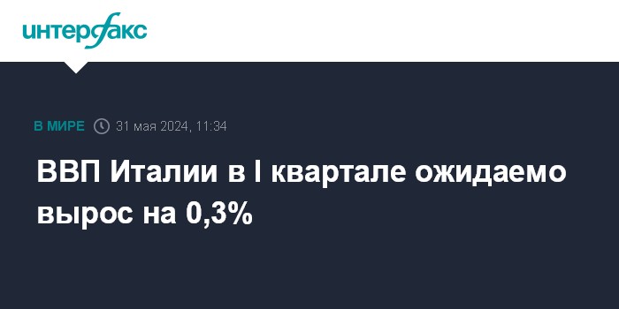 Москва. 31 мая. INTERFAX.RU - Экономика Италии в первом квартале 2024 года выросла на 0,3% относительно предыдущего квартала. Об этом говорится в окончательных данных статистического агентства Istat.