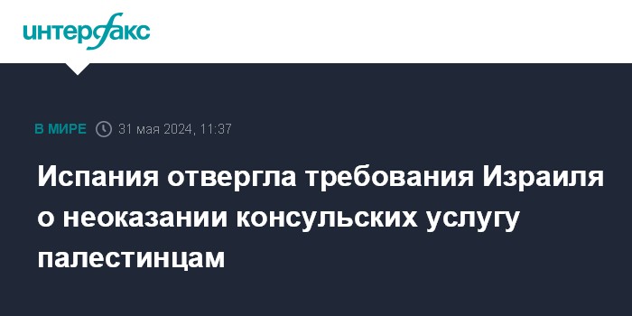 В понедельник израильский МИД направил в генеральное консульство Испании в Иерусалиме дипломатическую ноту, запрещающую ему с 1 июня предоставлять услуги палестинцам с Западного берега реки Иордан.