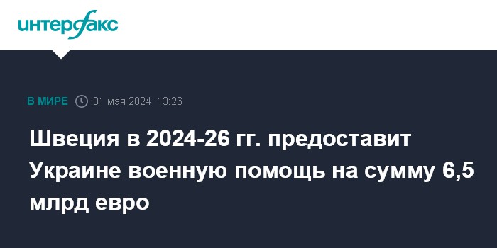 "Швеция предоставит Украине военную помощь на общую сумму 75 млрд шведских крон (приблизительно 6,5 млрд евро) в течение трехлетнего периода с 2024 по 2026 годы", - говорится в тексте соглашения, опубликованном на сайте правительства Швеции.
