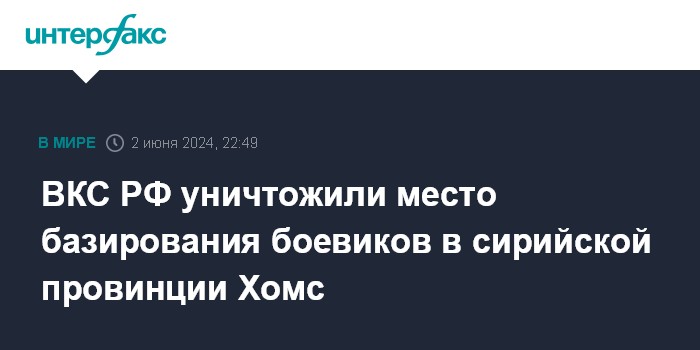 ВКС РФ уничтожили место базирования боевиков в сирийской провинции Хомс