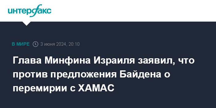 Глава Минфина Израиля заявил, что против предложения Байдена о перемирии с ХАМАС