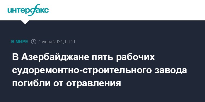 В Азербайджане пять рабочих судоремонтно-строительного завода погибли от отравления