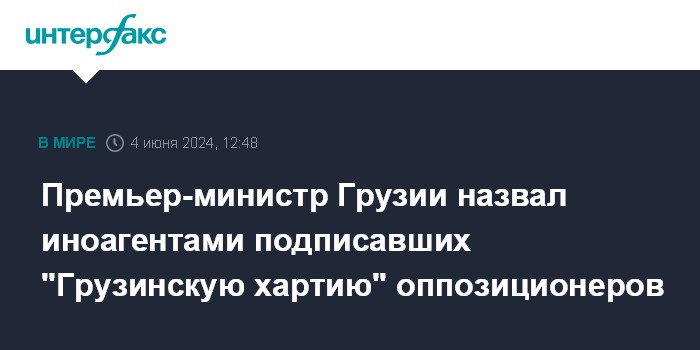 Премьер-министр Грузии назвал иноагентами подписавших "Грузинскую хартию" оппозиционеров