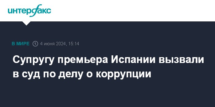 Москва. 4 июня. INTERFAX.RU - Супругу премьер-министра Испании Бегонью Гомес вызвали в суд для дачи показаний в рамках расследования по делу о коррупции, сообщает во вторник Associated Press.