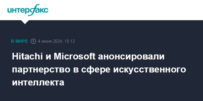 Москва. 4 июня. INTERFAX.RU - Японская Hitachi и Microsoft Corp. заключили стратегическое партнерство в сфере искусственного интеллекта, объем которого составит "миллиарды долларов" в течение трех лет.