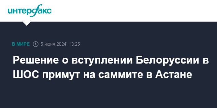 Решение о вступлении Белоруссии в ШОС примут на саммите в Астане
