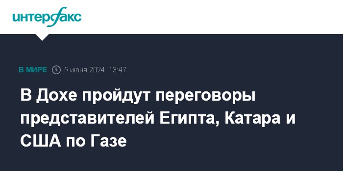 Москва. 5 июня. INTERFAX.RU - В Дохе 5 июня, как ожидается, встретятся представители силовых структур Египта, Катара и США, чтобы обсудить механизмы возобновления переговоров о прекращении огня в секторе Газа, сообщили израильские СМИ.