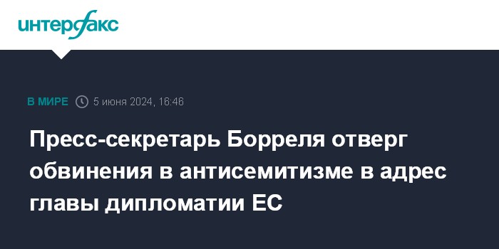 Его попросили прокомментировать принятую 4 июня в Амстердаме на ежегодной конференции Европейской еврейской ассоциации (EJA) резолюцию, в которой Борреля обвинили в "разжигании латентного антисемитизма в Европе" из-за его антиизраильской позиции.