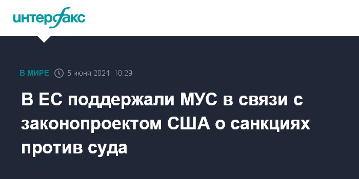 Москва. 5 июня. INTERFAX.RU - В ЕС внимательно следят за событиями вокруг утверждения Палатой представителей Конгресса США законопроекта, предусматривающего санкции против Международного уголовного суда (МУС) за угрозу ареста премьера Израиля Биньямина Нетаньяху.