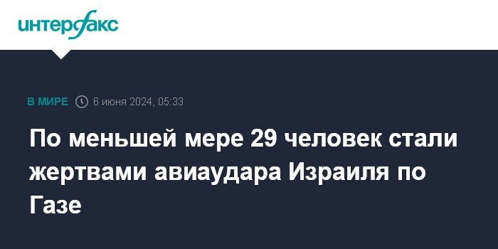 По меньшей мере 29 человек стали жертвами авиаудара Израиля по Газе