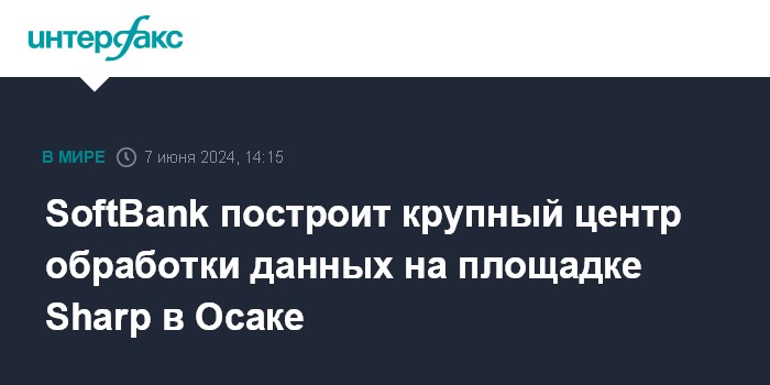 Москва. 7 июня. INTERFAX.RU - SoftBank Corp. планирует построить крупный центр обработки данных для приложений в сфере искусственного интеллекта на площадке Sharp Corp. в Осаке.