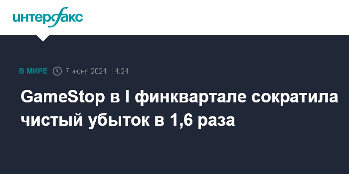 Москва. 7 июня. INTERFAX.RU - Американская GameStop, владелец сети магазинов видеоигр и игровой электроники, в первом финансовом квартале сократила чистый убыток в 1,6 раза, но выручка оказалась хуже ожиданий экспертов