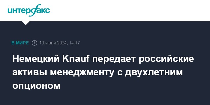 "Knauf передает актив менеджменту с опционом, то есть с правом обратного выкупа в течение двух лет", - сказал он в кулуарах ПМЭФ-24.