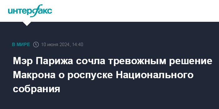 Мэр Парижа сочла тревожным решение Макрона о роспуске Национального собрания