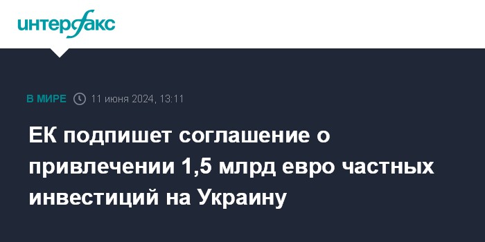 ЕК подпишет соглашение о привлечении 1,5 млрд евро частных инвестиций на Украину