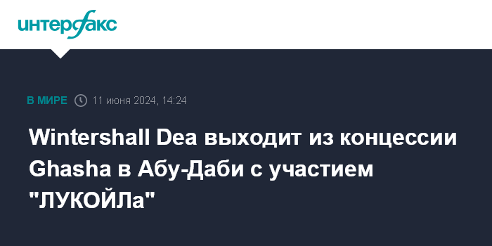Wintershall Dea выходит из концессии Ghasha в Абу-Даби с участием "ЛУКОЙЛа"