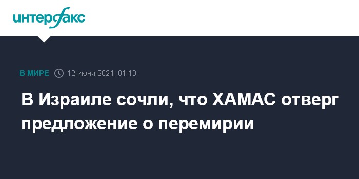 Москва. 12 июня. INTERFAX.RU - Израильская сторона считает, что движение ХАМАС де-факто отвергло план по перемирию в секторе Газа, сообщает The Times of Israel.
