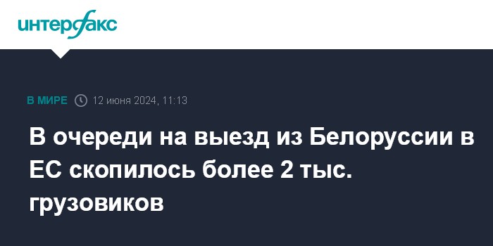 Москва. 12 июня. INTERFAX.RU - Более 2 тыс. грузовиков скопилось на выезде из Белоруссии в страны Евросоюза, сообщила в среду пресс-служба Государственного пограничного комитета (ГПК) республики.