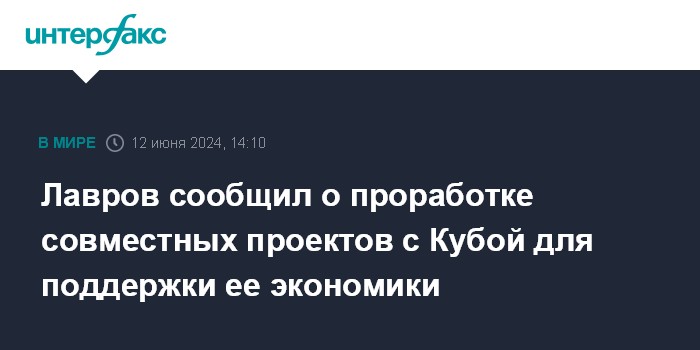 Москва. 12 июня. INTERFAX.RU - Россия намерена способствовать укреплению экономики Кубы, которая в том числе страдает от санкций, заявил в среду глава МИД РФ Сергей Лавров.