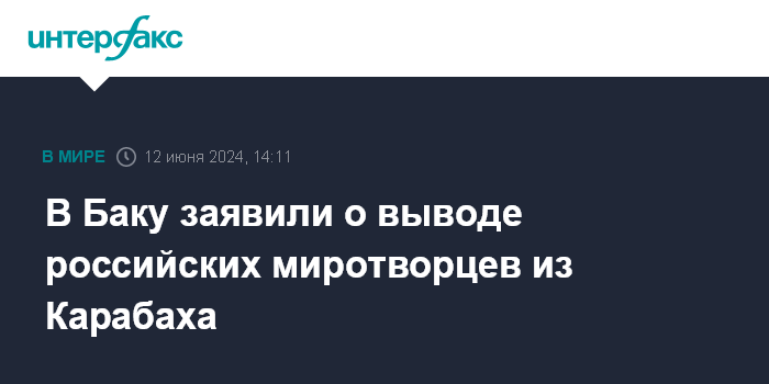"12 июня завершился процесс вывода российского миротворческого контингента, размещенного на территории Азербайджана после второй Карабахской войны (в ноябре 2020 года - ИФ)", - говорится в сообщении азербайджанского Минобороны.