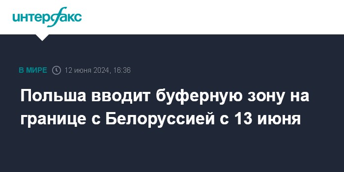 Москва. 12 июня. INTERFAX.RU - Буферная зона будет введена Польшей на границе с Белоруссией с четверга, распоряжение об этом подписал глава МВД страны, сообщила в среду пресс-служба польского министерства.
