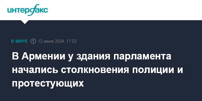 Москва. 12 июня. INTERFAX.RU - Столкновения демонстрантов и полиции начались у здания парламента Армении, где проходит "правительственный час" с участием премьер-министра Никола Пашиняна.