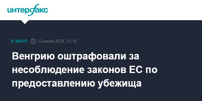 Москва. 13 июня. INTERFAX.RU - Суд Европейского союза в четверг опубликовал постановление, согласно которому Венгрия обязана выплатить штраф в 200 млн евро и выплачивать 1 млн евро за каждый день просрочки за невыполнение решения суда по приему просителей международной защиты.