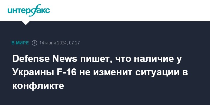 Defense News пишет, что наличие у Украины F-16 не изменит ситуации в конфликте