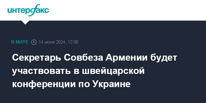 Москва. 14 июня. INTERFAX.RU - Секретарь Совбеза Армении Армен Григорян примет участие в конференции по Украине, которая пройдет в Швейцарии.