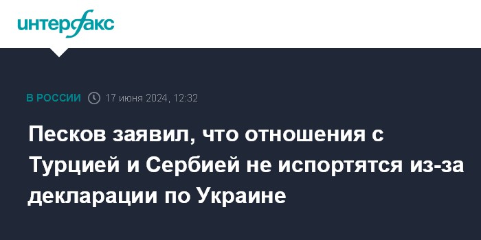 Песков заявил, что отношения с Турцией и Сербией не испортятся из-за декларации по Украине