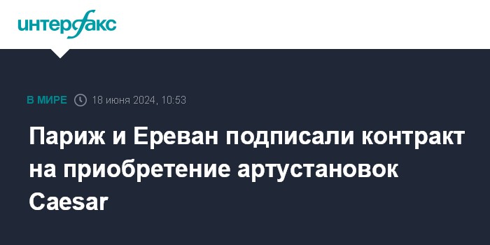 Москва. 18 июня. INTERFAX.RU - Франция поставит Армении артиллерийские установки Caesar, заявил глава французского Минобороны Себастьян Лекорню.