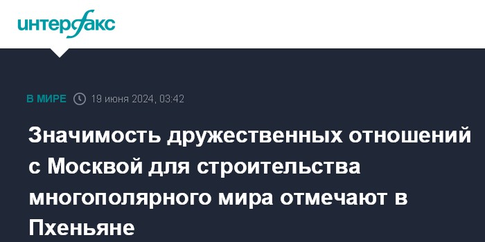 Значимость дружественных отношений с Москвой для строительства многополярного мира отмечают в Пхеньяне