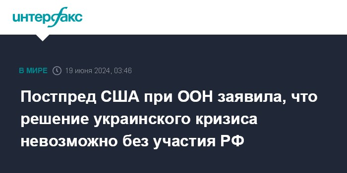 Постпред США при ООН заявила, что решение украинского кризиса невозможно без участия РФ