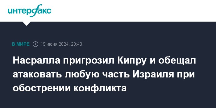 Насралла пригрозил Кипру и обещал атаковать любую часть Израиля при обострении конфликта