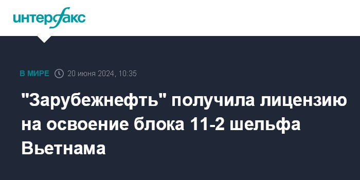 В ходе визита президента РФ Владимира Путина во Вьетнам был подписан ряд документов. В рамках церемонии обмена документами министр промышленности и торговли Вьетнама передал гендиректору акционерного общества "Зарубежнефть" Сергею Кудряшову инвестиционную лицензию на освоение блока 11-2 континентального шельфа Вьетнама.