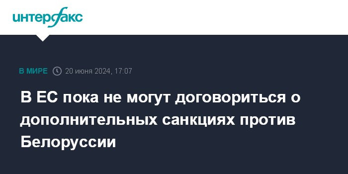 Москва. 20 июня. INTERFAX.RU - Постпреды ЕС не пришли к консенсусу по поводу санкций против Белоруссии, предусматривающих запрет поставок люксовых товаров, сообщило в четверг издание Politico со ссылкой на источники.