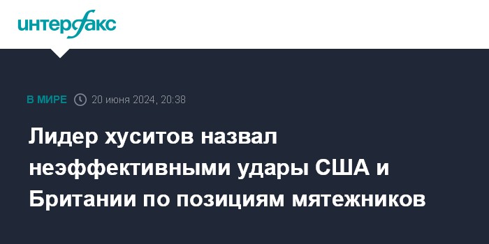 Москва. 20 июня. INTERFAX.RU - Авиаудары США и Великобритании по йеменским хуситам не приводят к результатам, заявил в четверг лидер этой группировки мятежников "Ансар Аллах" Абдул-Малик Аль-Хуси.