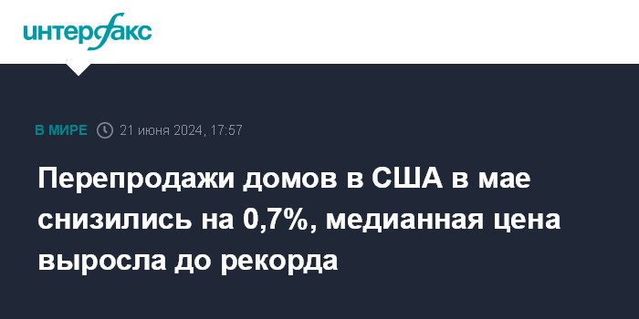 Перепродажи домов в США в мае снизились на 0,7%, медианная цена выросла до рекорда