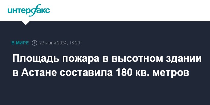 Москва. 22 июня. INTERFAX.RU - Пожарные сняли угрозу распространения огня в высотном здании в Астане, сообщила в субботу пресс-служба МЧС Казахстана.