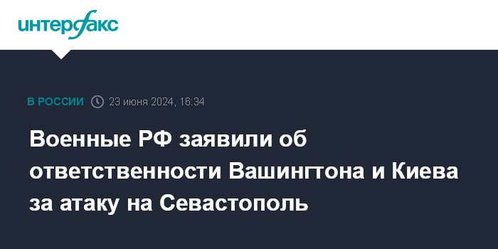 Москва. 23 июня. INTERFAX.RU - Министерство обороны России возложило на Вашингтон и Киев ответственность за атаку ракетами ATACMS на Севастополь.