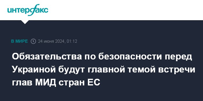 Москва. 24 июня. INTERFAX.RU - Главной темой встречи министров иностранных дел стран Евросоюза, которая состоится в понедельник в Люксембурге, будет подготовка обязательств в области безопасности перед Украиной и усиление ее военной поддержки, в том числе за счет доходов от замороженных российских активов, сообщил высокопоставленный чиновник ЕС.
