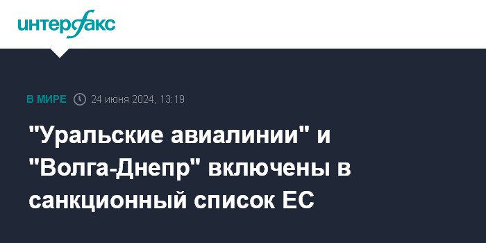 Москва. 24 июня. INTERFAX.RU - Авиакомпания "Уральские авиалинии" включена в санкционный список Евросоюза, сообщается в официальном журнале ЕС.