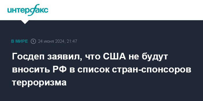 "Мы продолжаем считать, что есть более эффективные способы привлекать Россию к ответственности, чем причислять ее к государствам-спонсорам терроризма", - сказал представитель Госдепартамента Мэтью Миллер.