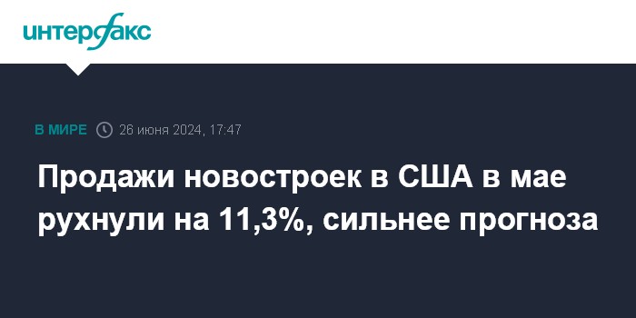 Продажи новостроек в США в мае рухнули на 11,3%, сильнее прогноза