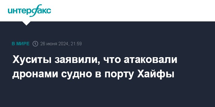 Хуситы заявили, что атаковали дронами судно в порту Хайфы