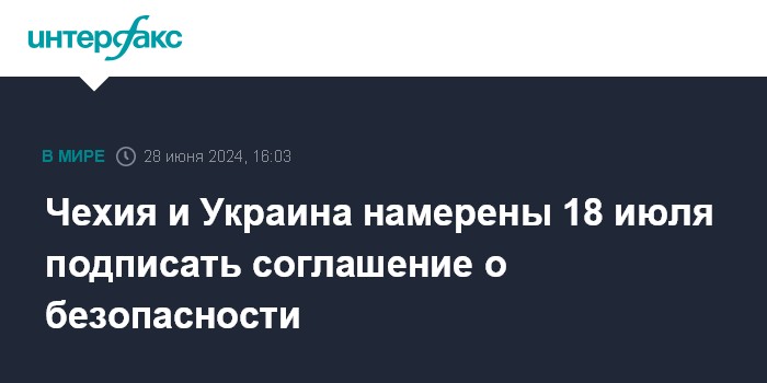 Москва. 28 июня. INTERFAX.RU - Премьер-министр Чехии Петр Фиала заявил в пятницу, что он и президент Украины Владимир Зеленский планируют завершить переговоры по договору в области безопасности перед саммитом НАТО в Вашингтоне и подписать документ 18 июля.